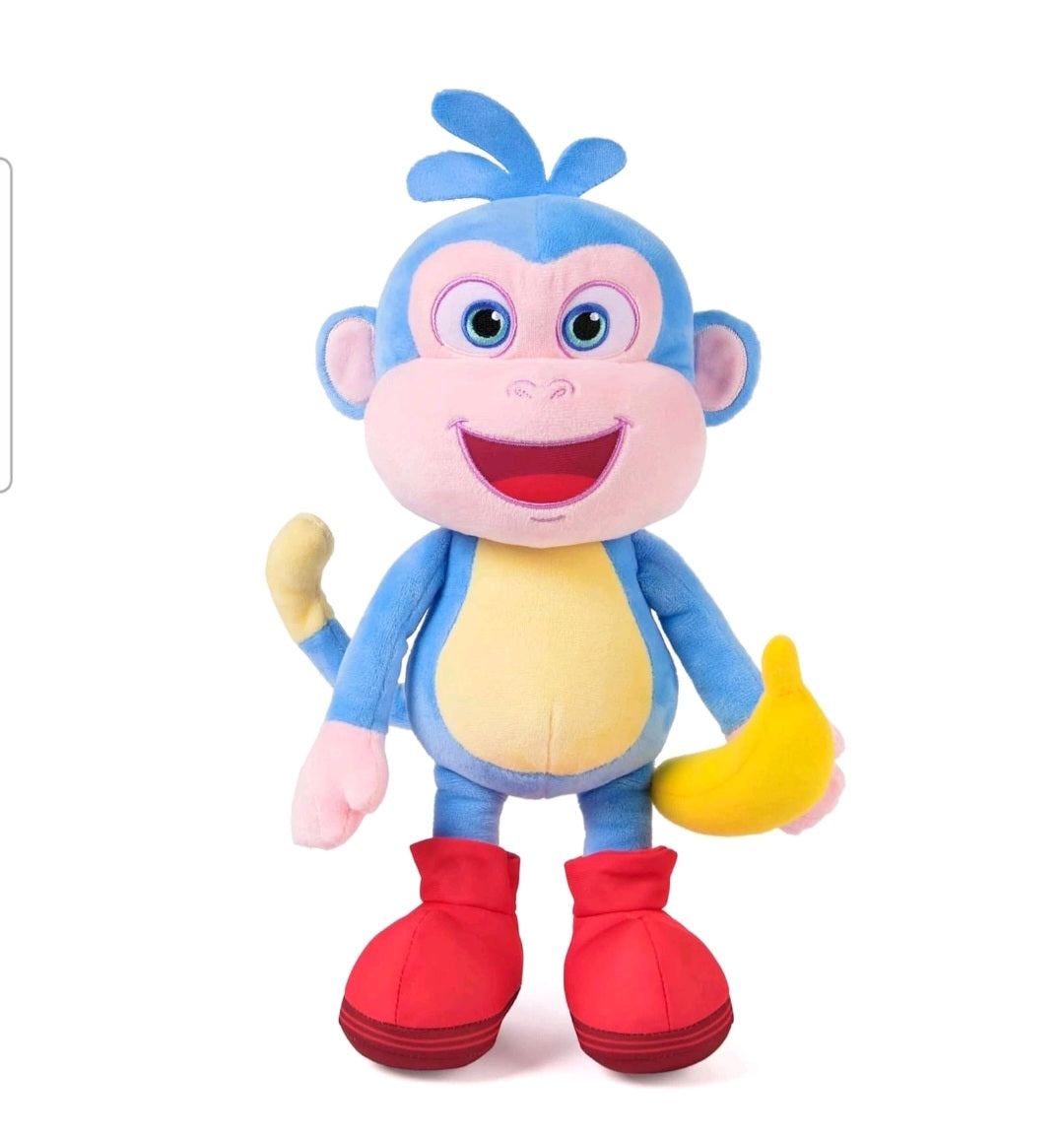 Bring home the magic of Dora the Explorer with this adorable 33 cm Bananas for Boots singing plush. This velvety-soft monkey toy comes to life with nine familiar phrases and two catchy songs when you press his tummy, making playtime interactive and fun. Boots features a flexible, poseable tail and Velcro-lined hands that allow him to hold his favorite bright yellow banana accessory. Perfect for little explorers and fans of the show, this snuggly companion is an ideal gift for birthdays or everyday play. Explore new adventures and encourage early language learning with this iconic and huggable friend.